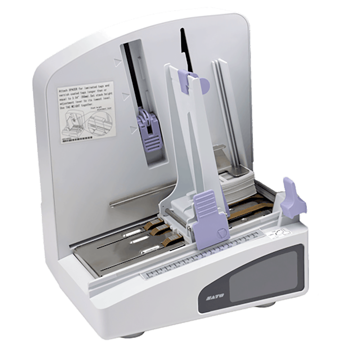 The TG3 Stacker uniformly stacks labels and tags.