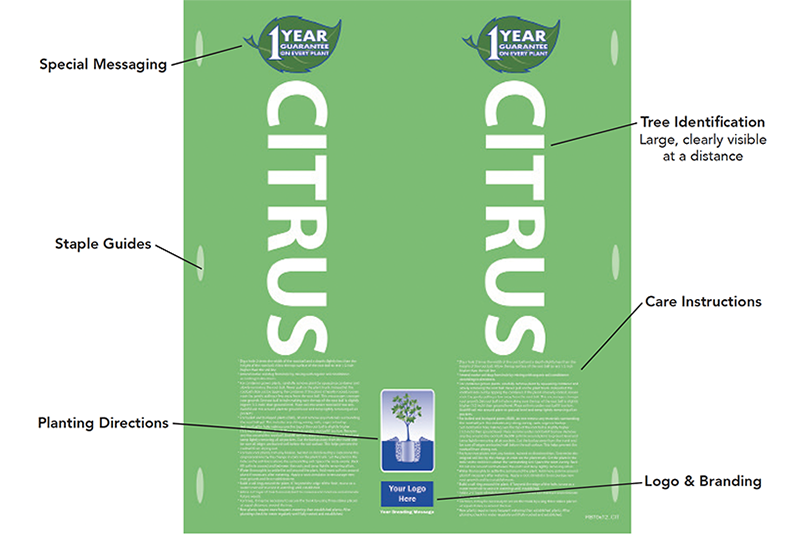 Tree wraps provide quick information to help consumers choose their ideal tree. Just wrap and staple, no messy glue strips to contend with.